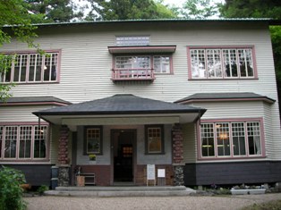この記念館は、軽井沢南原の別荘地開発に尽力した市村今朝蔵・きよじ夫妻を記念して残された建物です。