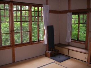 部屋から見る屋外の緑がとてもきれいで、心が安らぎます。